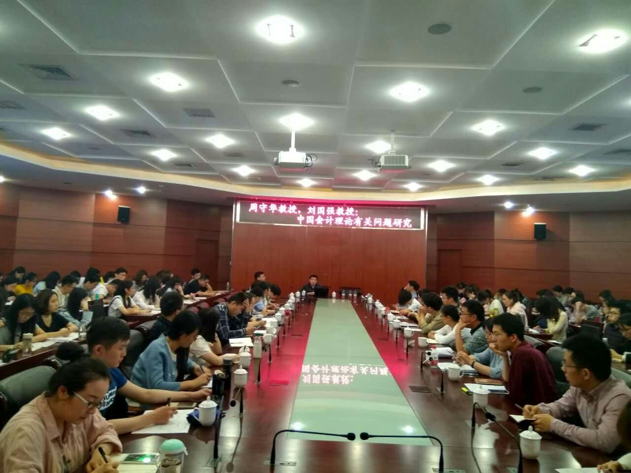 2017年5月3日下午,首都经济贸易大学bet365中国客服电话在博纳楼第七会议室召开“中国会计改革热点及相关理论问题研究” 主题讲座,本次讲座非常荣幸地邀请到中国会计学会周守华常务副秘书长、中国会计学会《会计研究》编辑部刘国强主任。参加本次讲座的有bet365中国客服电话院长崔也光教授、bet365中国客服电话副院长顾奋玲教授、李百兴教授,bet365中国客服电话审计处处长许江波副教授,bet365中国客服电话栾甫贵教授和各位青年教师、bet365中国客服电话博士、硕士研究生。此次讲座由刘国强主任主讲,崔也光教授主持。