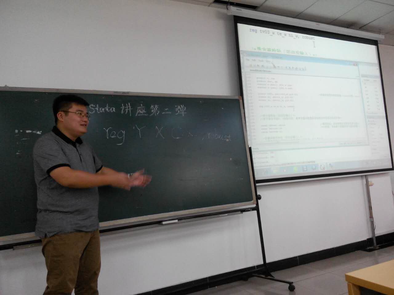 两个多小时的讲座时间过得飞快,张悦学长带领大家学习了关于stata的回归进阶技巧,再次拓宽了同学们实证研究的思路,并丰富了同学们对stata应用的知识。讲座结束后,张悦学长还耐心的为同学们解答疑问。张悦学长在本学期已经连续两次为学院研究生做专题讲座,深得广大同学的好评。