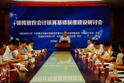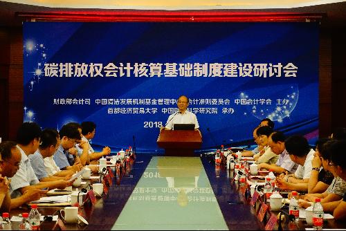 6月22日,碳排放权会计核算基础制度建设研讨会在我校博纳楼第七会议室隆重开幕。本次研讨会由财政部会计司、中国清洁机制发展基金管理中心、会计准则委员会和中国会计学会主办,首都经济贸易大学bet365中国客服电话和中国财政科学研究院承办。来自财政部、生态环境部、碳交易市场、控排企业、会计师事务所、银行的代表、高校师生共计100余人出席会议。《会计研究》、《会计之友》、《财务与会计》、中国会计报、中国财经报等媒体出席了会议。首都经济贸易大学副校长杨开忠教授在开幕式上精彩致辞,财政部会计司高一斌司长、清洁基金管理中心焦小平主任、生态环境部气候变化司蒋兆理副司长、中国会计学会杨敏副会长分别进行主旨发言。