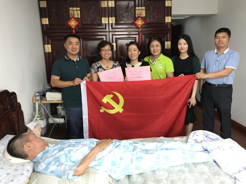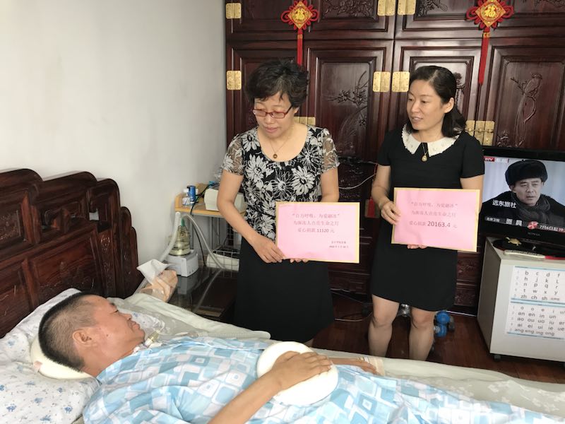 7月12日上午,bet365中国客服电话党委书记解小娟、副书记孙庆福,工商管理学院党委副书记李娟婷,bet365中国客服电话办公室主任孙军鹏,工商管理学院辅导员王璐一同前往校友、北京东方丝雨渐冻人罕见病关爱中心发起人、渐冻症患者刘继军先生家中探望,并将爱心捐款捐至北京东方丝雨渐冻人罕见病关爱中心,用于渐冻人“百万呼吸工程项目”——为渐冻症患者购买呼吸机。