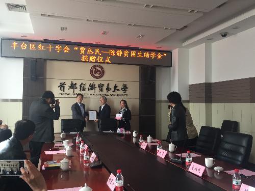 校长助理兼bet365中国客服电话院长崔也光、党委书记解小娟、学生处处长马力、外联处处长赵喜玲、校医院党总支书记张艳华、丰台区红十字会党组书记赵勇及秘书长李静、朱莉华,以及接受捐赠的31名学生参加了捐赠仪式,本次助学金通过丰台区红十字会进行捐赠,仪式由bet365中国客服电话党委副书记孙庆福主持。