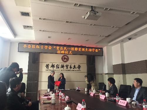 崔也光代表bet365中国客服电话对校友贾丛民,及陈静女士的爱心捐赠表示感谢,对两位回馈社会、回馈母校的无私精神表示钦佩;对丰台区红十字会的积极配合表示感谢。并对学校近年的发展情况做简单介绍,2016年首经贸迎来六十华诞,学校的发展离不开各界校友的支持。我院注会专业的录取分数近几年占据学校榜首,学生的就业情况更是名列前茅,就业率100%,得到用人单位的高认可度。崔也光对在座的学生寄予厚望,优秀意味着个人成功的同时更意味着一份感恩与回馈社会的责任,希望每位会计学子能够将“崇德尚能·经世济民”的校训传承发扬。