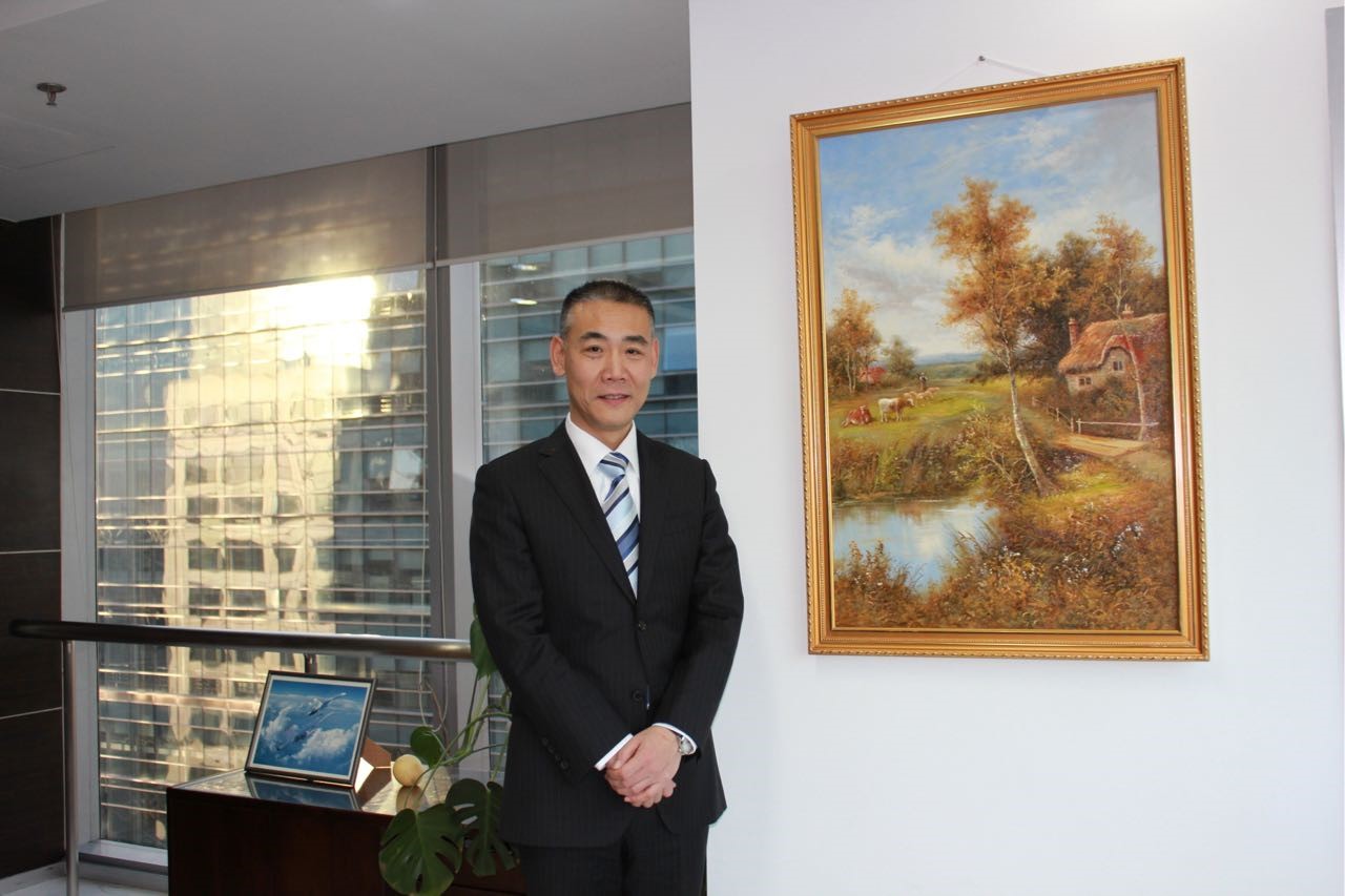 由于门禁森严,阴泽琦亲自到大厦楼底将我们迎了进去。初次见面感觉他精神焕发、神采奕奕,透露出一股亲切和善的气息。进入办公室,窗明几净,整洁淡雅。我们一行四人,受到了来自校友学长的热情招待。伴随着萦绕在唇齿间龙井的清香,我们开始进行采访。